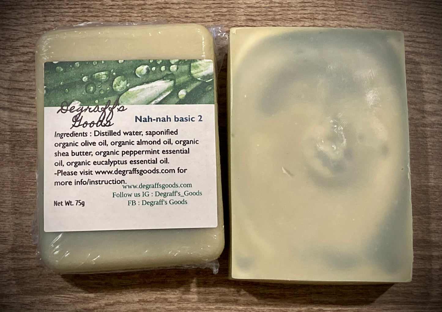 Le parfum de Nah-Nah est à la menthe, composé d'huile essentielle de menthe poivrée pure et d'huile essentielle d'eucalyptus pure. Notre formule contient uniquement des huiles biologiques sans OGM comme la noix de coco non raffinée, le beurre de karité et l'olive. Gardez à l’esprit que chaque barre de cette collection pèse environ 80 à 95 g, avec de légères variations dues à sa nature artisanale. Il n’y a pas deux barres identiques.